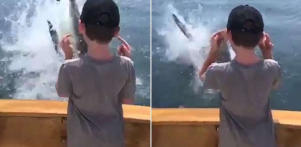 Wie ein Video auf Instagram zeigt, schoss der Raubfisch aus dem Wasser und schlug mit der Schwanzflosse gegen das Boot.