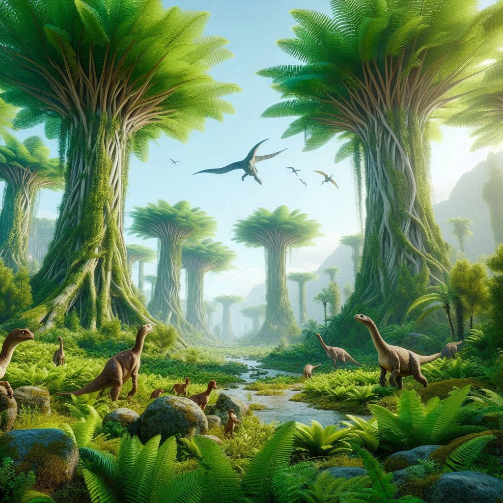 Erst während einer Erwärmungsphase vor 250 Millionen Jahren gediehen ungewöhnliche Pflanzen, sogenannte "Samenfarne". Diese Pflanzen dominierten Millionen Jahre lang die Landschaften der Erde. Sie ebneten den Weg für die üppigen Wälder im "Zeitalter der Dinosaurier" (Mesozoikum).