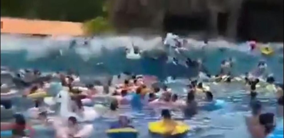 Ein entspannter Nachmittag im Freibad wird zum Alptraum: Eine Wellenmaschine im Shuiyun Wasserpark in Nordchina lief am Sonntag Amok. Statt leichtem Geplätscher bricht eine meterhohe Tsunami-Riesenwelle über die Badegäste herein. Ein Video zeigt, wie Menschen auf den harten Boden geschmettert werden, viele bluten.
