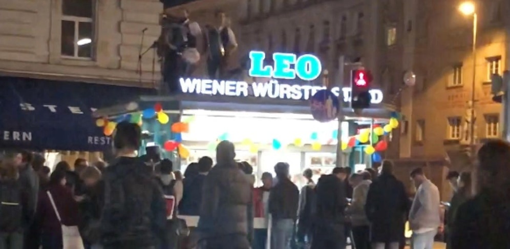Was das Quartett in luftige Höhe verschlagen hat? Eine Jubiläumsfeier! Der 1928 gegründete älteste Würstelstand Wiens, "Leo" am Döblinger Gürtel, ließ sich zum 90er hochleben. Für die musikalische Unterhaltung sorgten die "Spritbuam", kulinarische Wünsche ließ die Riesenkäsekrainer "Big Mama" auch nicht offen.