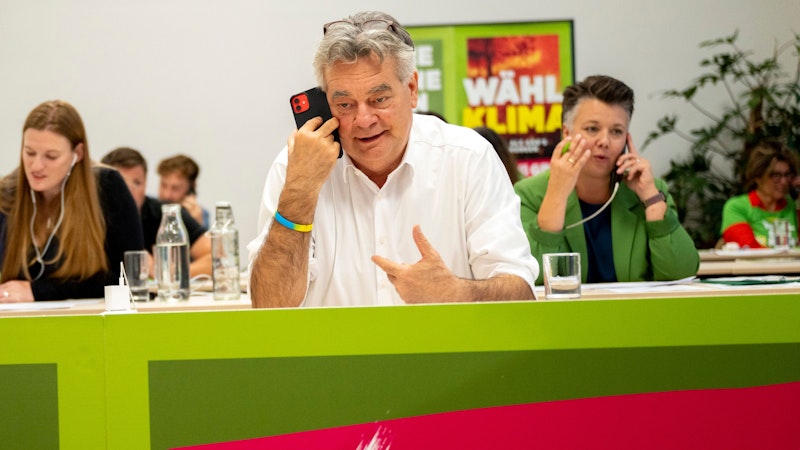 Neben Werner Kogler telefonieren auch die Top-Kandidaten aus Bund und den Ländern. 15 Grünen Kandidaten trafen sich in der Grünen Telefonzentrale um sich bei allen zu melden, die noch unentschlossen waren.