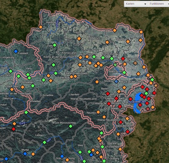 Die direkten Folgen sind mittlerweile deutlich sicht- bzw. messbar: Nachfolgend seht Ihr eine Karte mit den aktuellen Grundwasserspiegeln. Orange und Rot sind die dominierenden Farben im Osten des Landes, sprich das Grundwasser ist weit unterhalb der Norm. Besonders dramatisch ist die Lage dabei im südlichen Wiener Becken sowie im Nord- und Mittelburgenland.