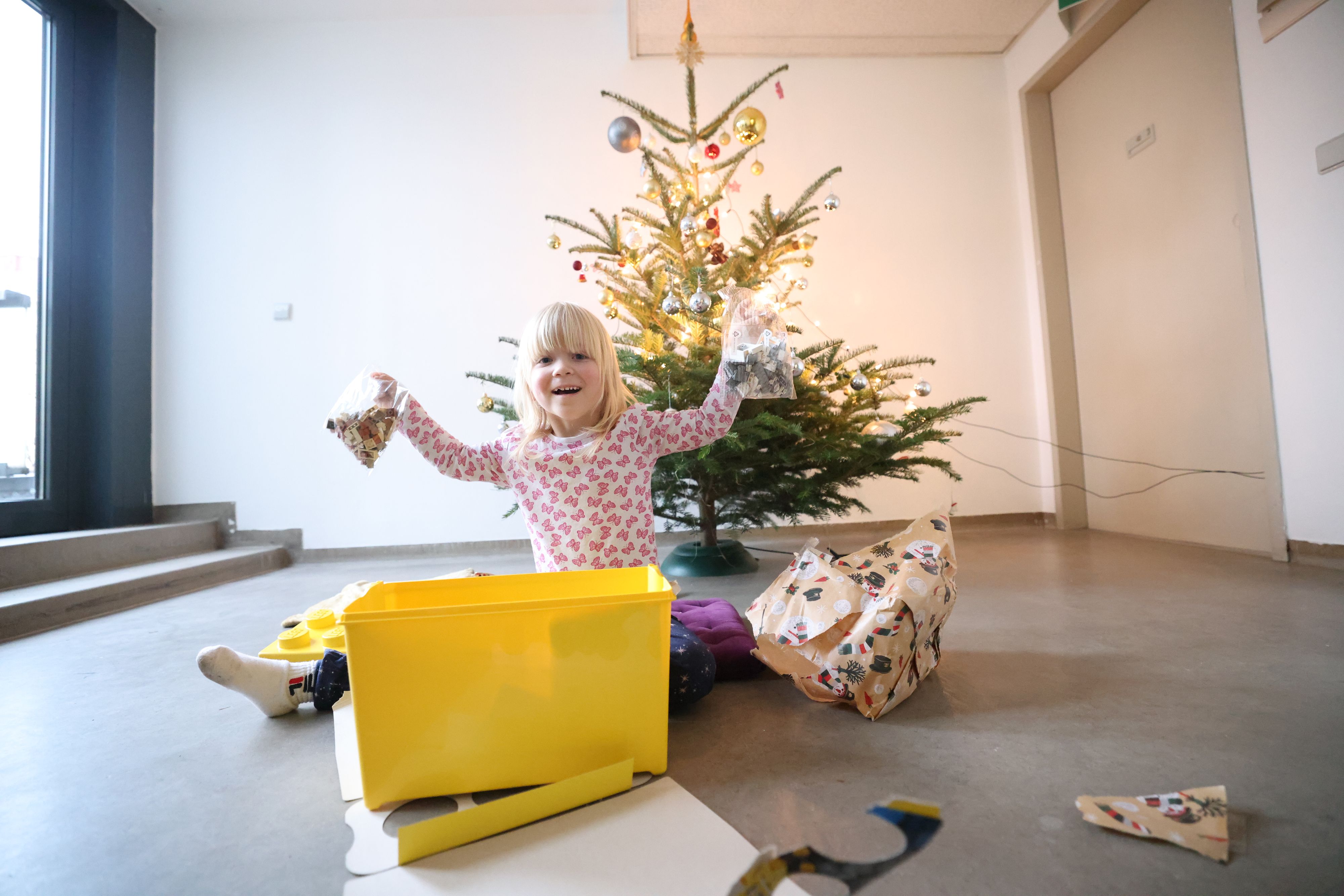 "Juhu, ein Lego", ruft die dreijährige Victoria. Lange hat das fein säuberlich verpackte Weihnachtspaket nicht überlebt. "Ich gehe nach Hause und baue etwas", kündigt sie gleich darauf strahlend an und macht sich mitsamt der schweren Kiste im Arm auf den Weg.
