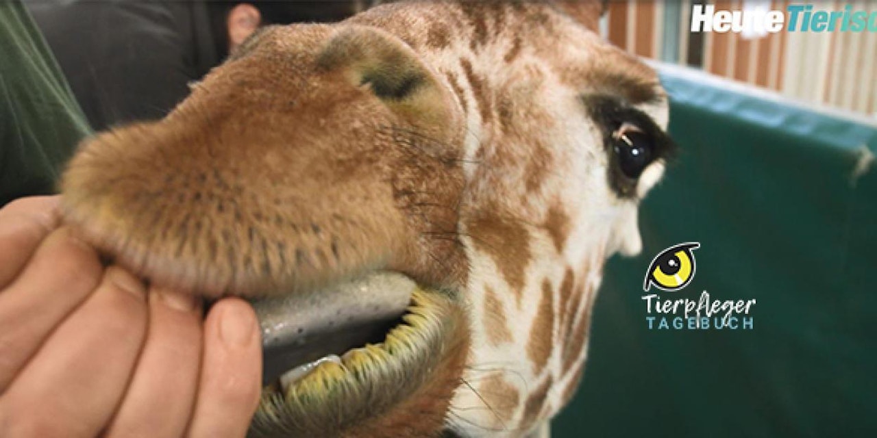 Im Tamer machen wir ein medizinisches Training, bei dem wir den Giraffen zum Beispiel mithilfe von sterilen Wanzen Blut abnehmen. Dazu setzen wir die Wanzen am Nacken der Giraffe an. Dort saugt sich die Wanze fest und saugt dann Blut. So können wir, ohne dass wir mit Nadeln arbeiten müssen, Blut abnehmen. Das ist schmerzfrei, es kitzelt vielleicht etwas, aber die Tiere stört das nicht. Eine andere medizinische Untersuchung ist die Zahnkontrolle. Momentan sind die Giraffen im Zahnwechsel, und wir schauen, ob die Zähne kommen, ob sie gerade kommen und ob am Ende alle vollzählig sind.