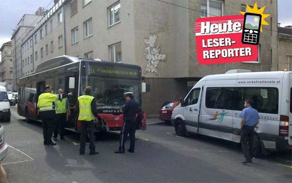Am Dienstag krachte es in Meidling ordentlich. Leserreporter Stefan Baranek war dabei, als ein Bus der Linie 9A und ein Lieferwagen der Wiener Verkehrsdienste zusammenkrachten.