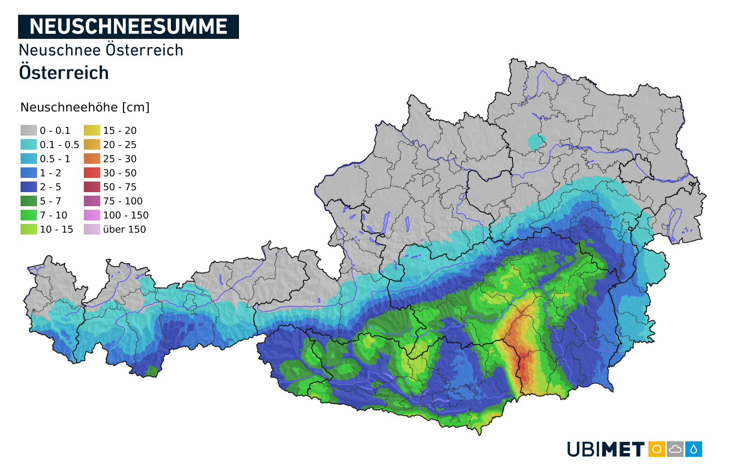 Im Großen und Ganzen sind bis in die Nacht auf Freitag die Regionen von Osttirol über Kärnten, das Grazer Bergland bis zum Wechsel von Neuschnee betroffen. Richtig große Mengen fallen aber nur von der südlichen Koralpe bis zum Schöckl, und das auch nur in etwas höheren Lagen. Sonst bildet sich maximal eine dünne Schneedecke."