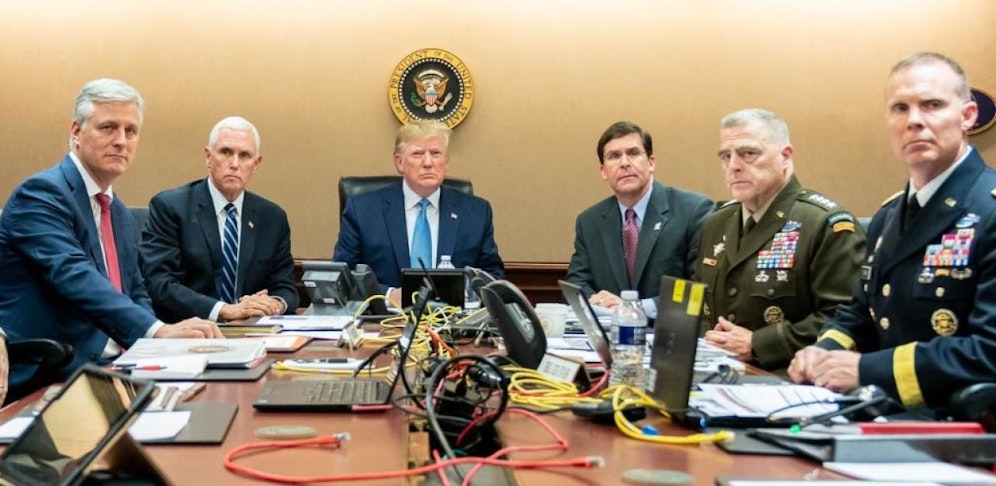 Wie schon sein Vorgänger Barack Obama beim Angriff auf Terrorchef Osama Bin Laden, verfolgten auch Trump und seine engsten Mitarbeiter "einen Großteil" des Einsatzes live im Weißen Haus in Washington (USA) mit.