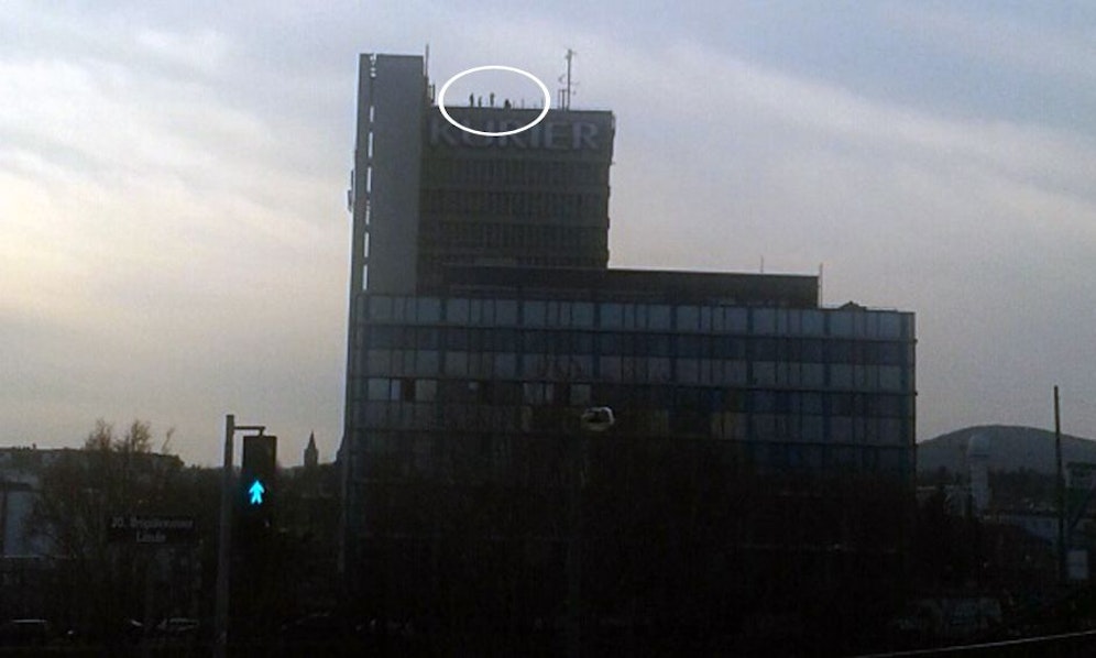 Am Mittwochabend herrschte einmal mehr Aufregung um das leerstehende ehemalige APA-Gebäude in der Gunoldstraße in Heiligenstadt. Mehrere Personen, offenbar Jugendliche, hatten das Dach des Gebäudes erklommen und es sich dort gemütlich gemacht.