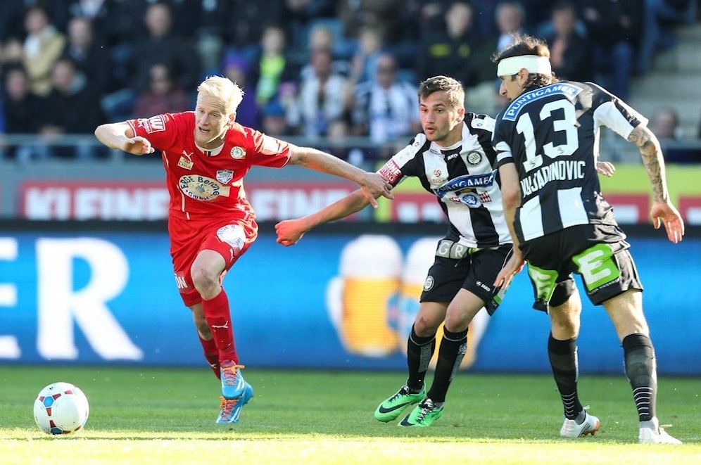 Sturm machte nun noch mehr fürs Spiel und drängte auf den Ausgleich. Für diesen zeichnete in der 31. Minute Florian Kainz nach einem Doppelpass mit Marco Djuricin verantwortlich. Der Stürmer legte in den Fünfer ab, wo Kainz goldrichtig postiert war und sein siebentes Saisontor erzielte. Auf der Gegenseite konnte sich kurz vor dem Pausenpfiff Pliquett nach einem Schuss von David Witteveen aus rund zwölf Metern auszeichnen (45.).
