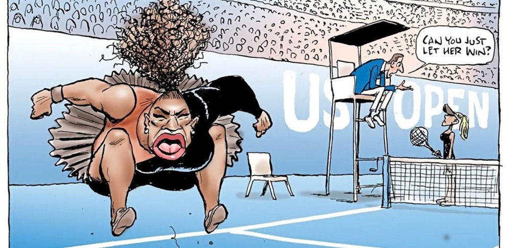 Serena Williams legte im Finale der US Open einen bemerkenswerten Auftritt hin – aber nicht aus sportlicher Sicht. Sie nannte Schiedsrichter Carlos Ramos einen "Dieb" und einen "Lügner", stellte nach dem Spiel Sexismus-Vorwürfe in den Raum und musste für ihren Auszucker nach dem 2:6, 4:6 gegen Naomi Osaka 23.800 Dollar Strafe zahlen. Jetzt wird über ihr Verhalten diskutiert. Auch eine Karikatur sorgt in diesem Zusammenhang für Aufsehen.