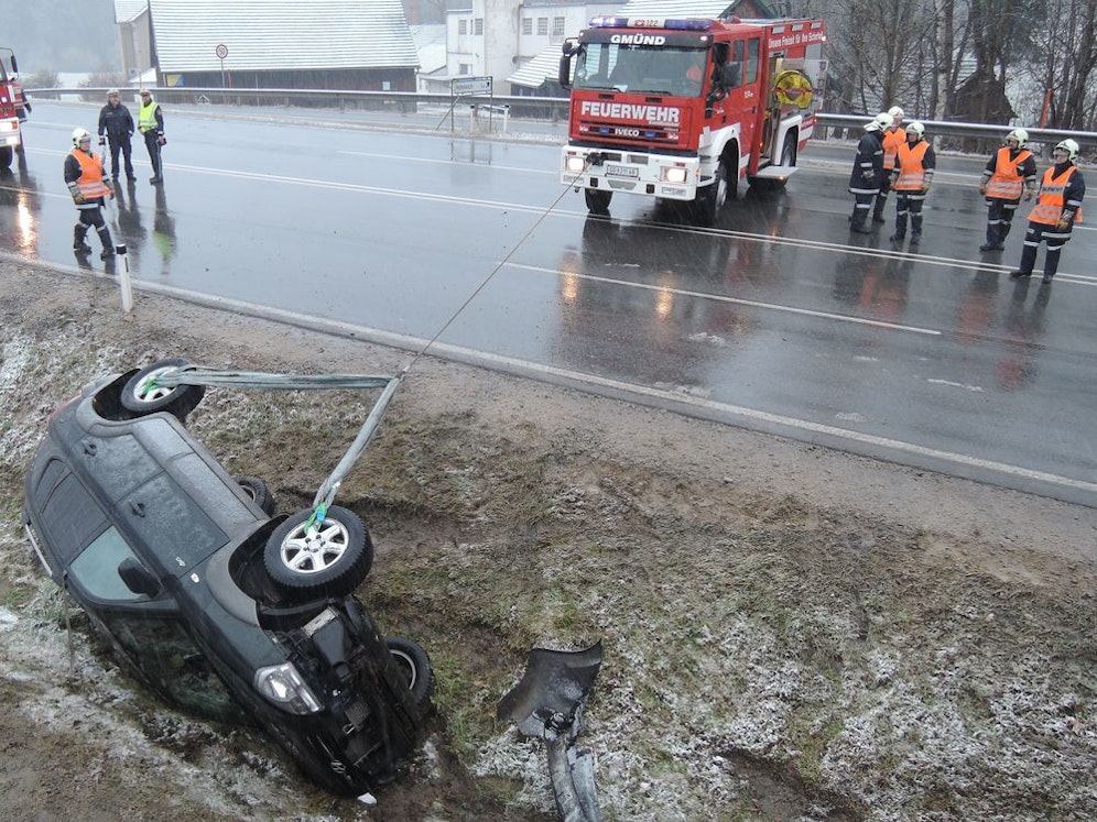 Zu einem schweren Verkehrsunfall kam es am Samstag in Hoheneich (Bezirk Gmünd): Ein Lenker war gerade auf der Bundesstraße 41 zwischen Gmünd und Schrems unterwegs, als er die Kontrolle über seinen Hyundai verlor, quer über alle vier Fahrspuren schlitterte und schließlich in den Graben krachte.