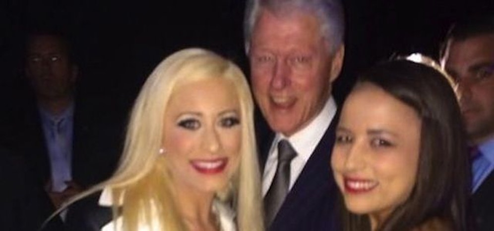 Clinton ließ sich vergangene Woche auf einem Wohltätigkeitsball in Los Angeles mit zwei gutaussehenden jungen Damen ablichten. Nun stellte sich heraus, dass die beiden Frauen aus dem Rotlicht-Milieu stammen und in einem legalen Bordell im US-Bundesstaat Nevada ihrer Tätigkeit als Prostituierte nachgehen.