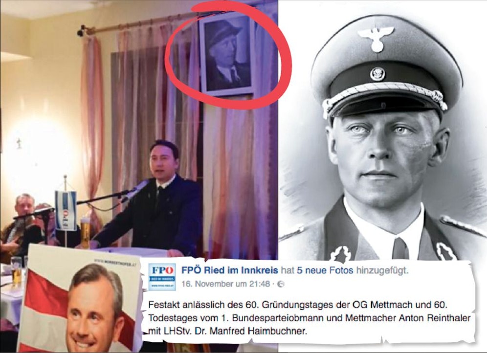 Die Bilder wurden am 16. November auf die Facebook-Seite der FPÖ Ried im Innkreis gestellt. Sie zeigen einen Festakt, bei dem die FPÖ-Ortsgruppe Mettmach ihren 60. Gründungstages feierte. Aber das war nicht alles.