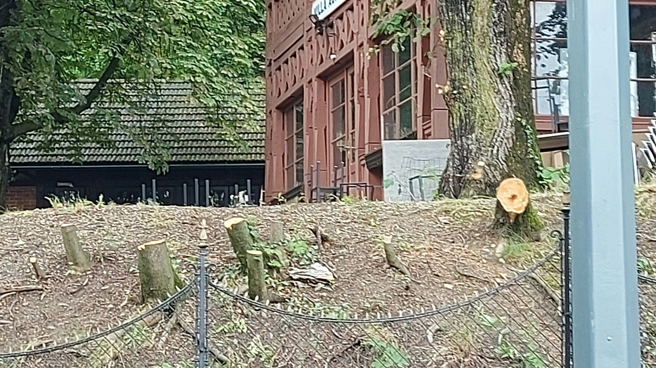 „Aufgrund der vernachlässigten Pflege des Voreigentümers hat ein Baumsachverständige auf dem Grundstück einige schadhafte Bäume identifiziert“Sprecherin der Villa Aurora