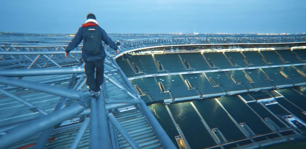 Seine jüngste Aktion: Gemeinsam mit anderen Roofern – wie sich die Community selbst nennt – erklomm er das Twickenham-Stadion in London udn filmte die Aktion mit einer GoPro.
