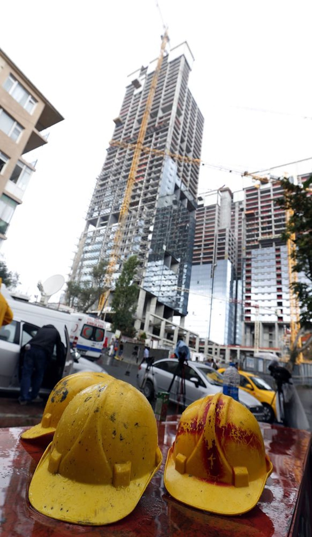 Der Arbeitsunfall ereignete sich im Viertel Mecidiyeköy im Zentrum des europäischen Teils von Istanbul. Dort soll ein 42-stöckiger Wohnturm entstehen, 36 Etagen sind bereits fertig. Ministerpräsident Ahmet Davutoglu bezeichnete den Tod der zehn Bauarbeiter als "sehr schmerzhaft". Istanbuls Gouverneur Hüseyin Avni Mutlu kündigte an, die Justiz werde jeglichen Verletzungen der Sicherheitsbestimmungen nachgehen.