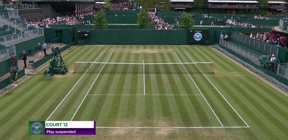 Der Grund: Eine 60-jährige Zuschauerin war während des Spiels auf der Tribüne kollabiert. Sofort wurde die Partie auf dem Court 12 gestoppt, die Zuschauerränge geleert.