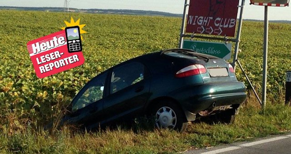 "Don't drink and drive", dachte sich wohl der Fahrer dieses Autos und parkte nach einem Zechgelage im Lustschloss (oder dem angrenzenden Nachtclub) sein Auto für ein Nickerchen im Feld. Leserreporter Vojti knipste den versenkten Pkw.
