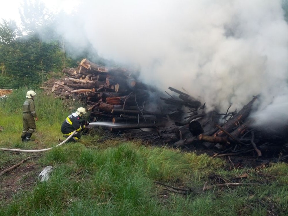 Schmerzhafte Attacke in Mauerbach bei Wien: Ein Holzstoß war in Brand geraten, beim Löscheinsatz schreckten die Feuerwehrmänner Markus Rader (28) und Florian Riener (25) einen Schwarm aggressiver Erdwespen auf.
