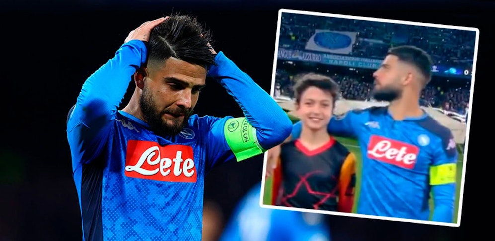 Napoli-Kapitän Lorenzo Insigne war beim Einlaufen ins San Paolo nicht sehr erfreut. Während die Fans die Champions-League-Hymne zelebrierten, schaute der Italiener grantig in die Kameras.