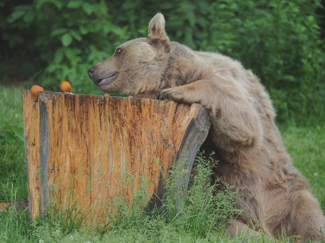 Bären-Opa "Felix" schnarcht zum ersten Mal auf Stroh