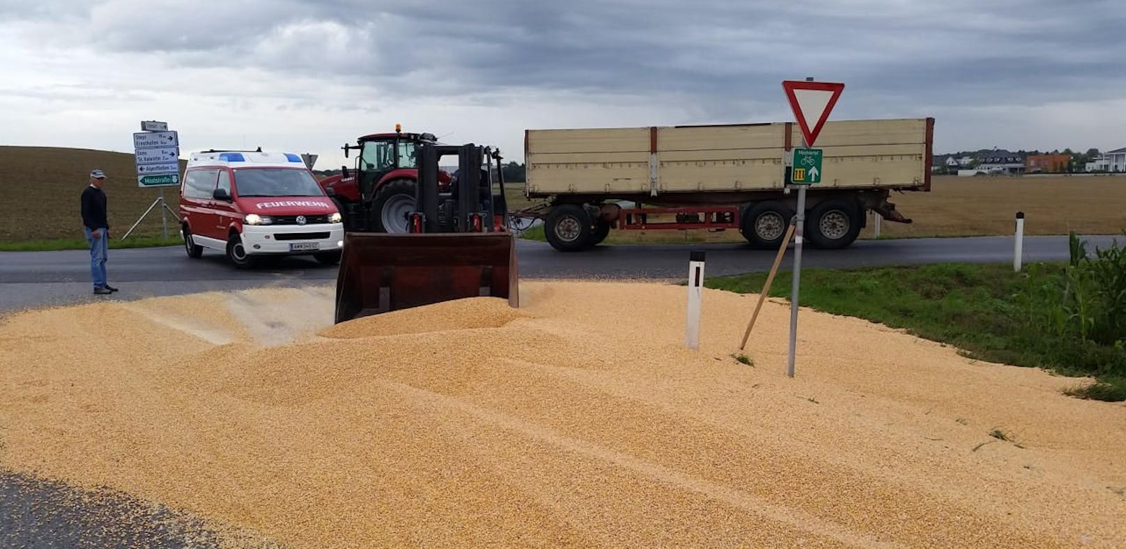 Landwirt verlor 25 Tonnen Mais auf Fahrbahn