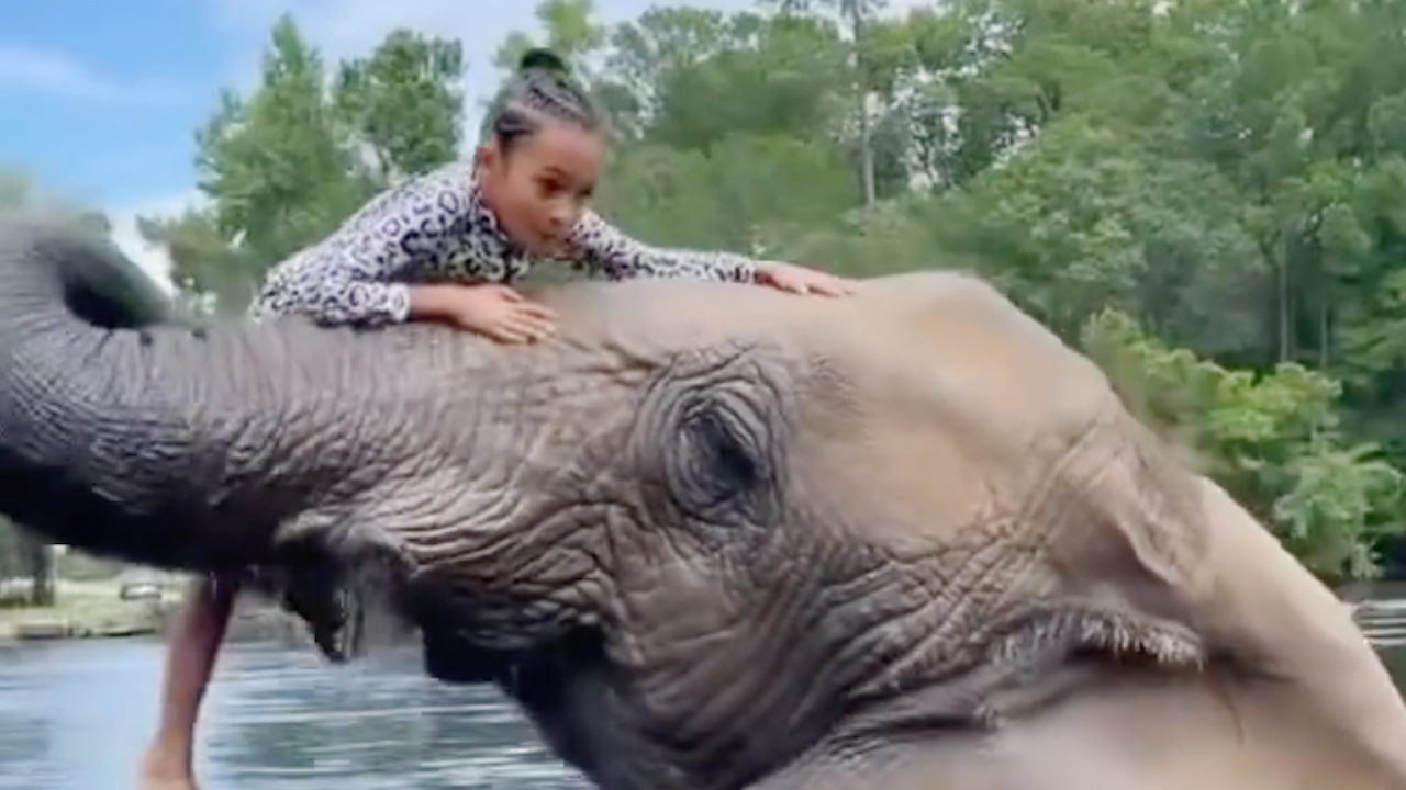 Elefant wirbelt Chris Browns Tochter (7) durch die Luft