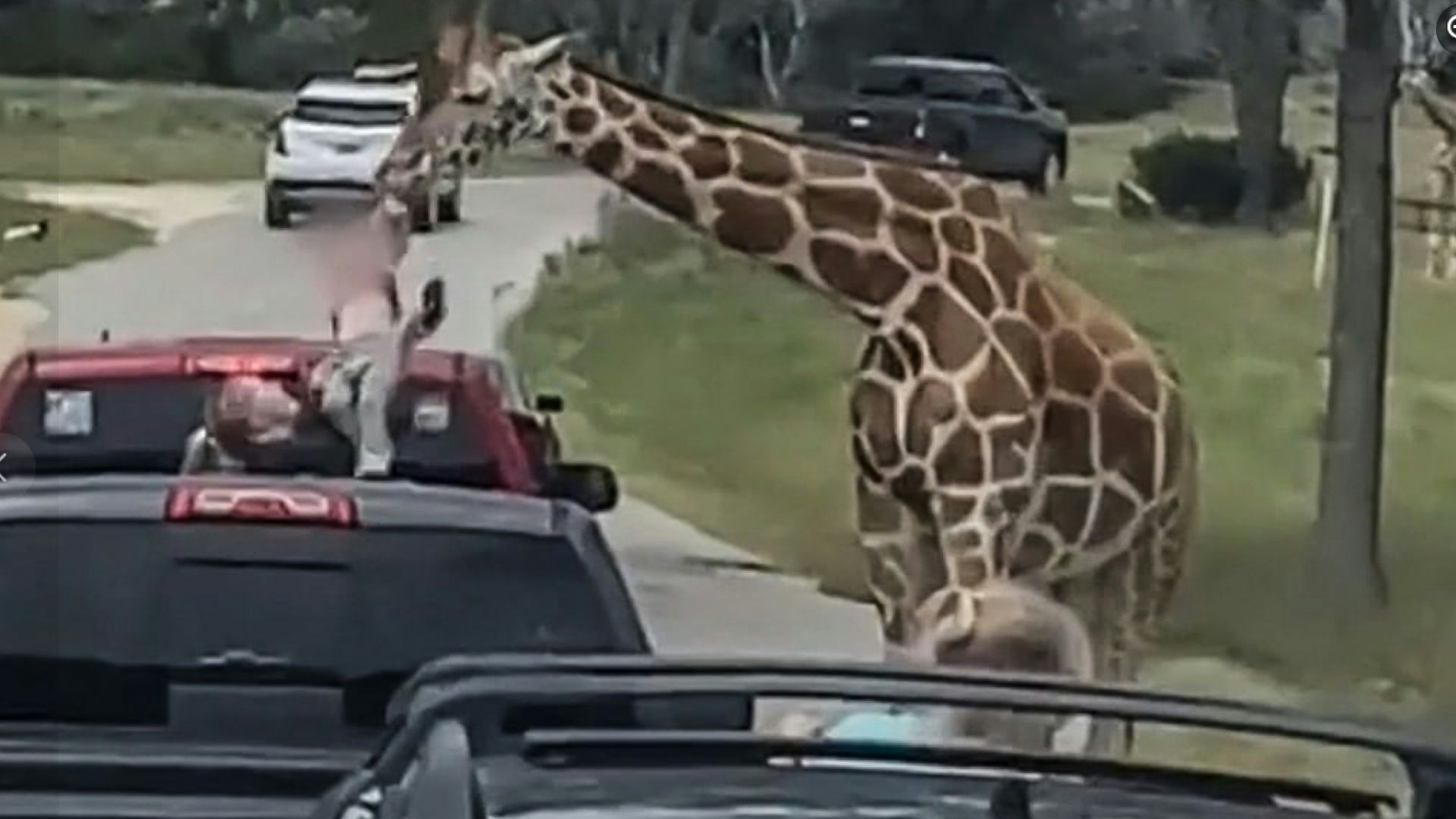 Giraffe zog bei Safari Zweijährige aus dem Auto