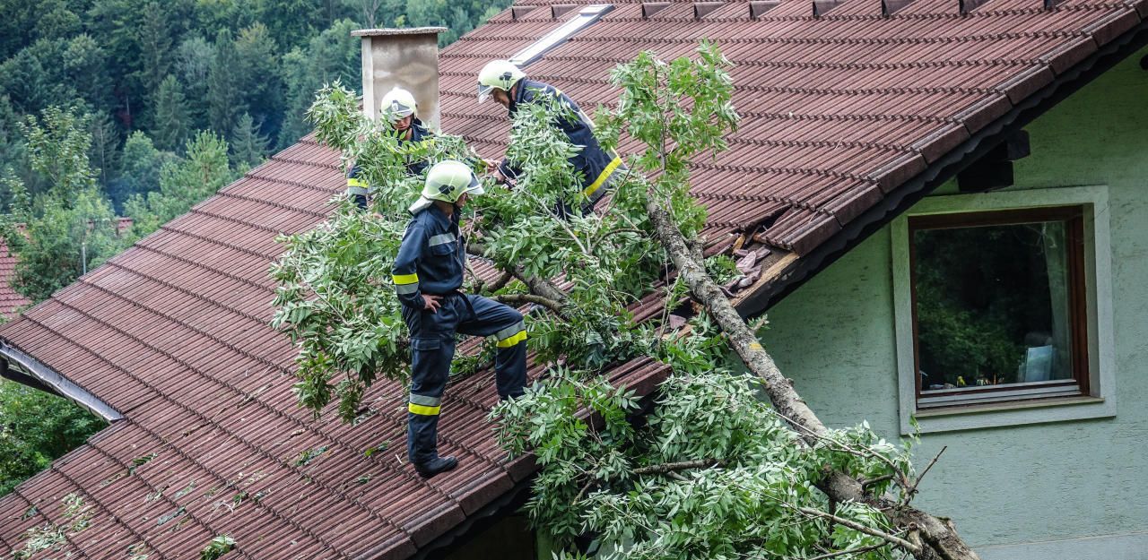 Wind weht Baum um: Esche kracht auf Wohnhaus
