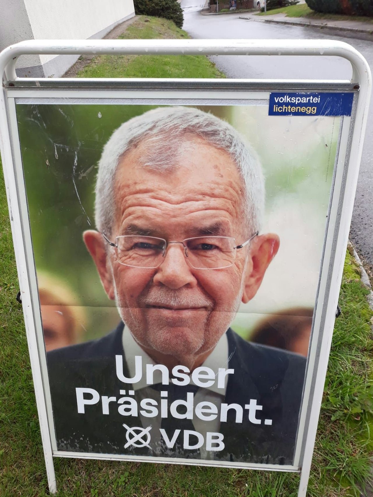 Nanu?! Hier lächelt VdB von einem Plakatständer der ÖVP