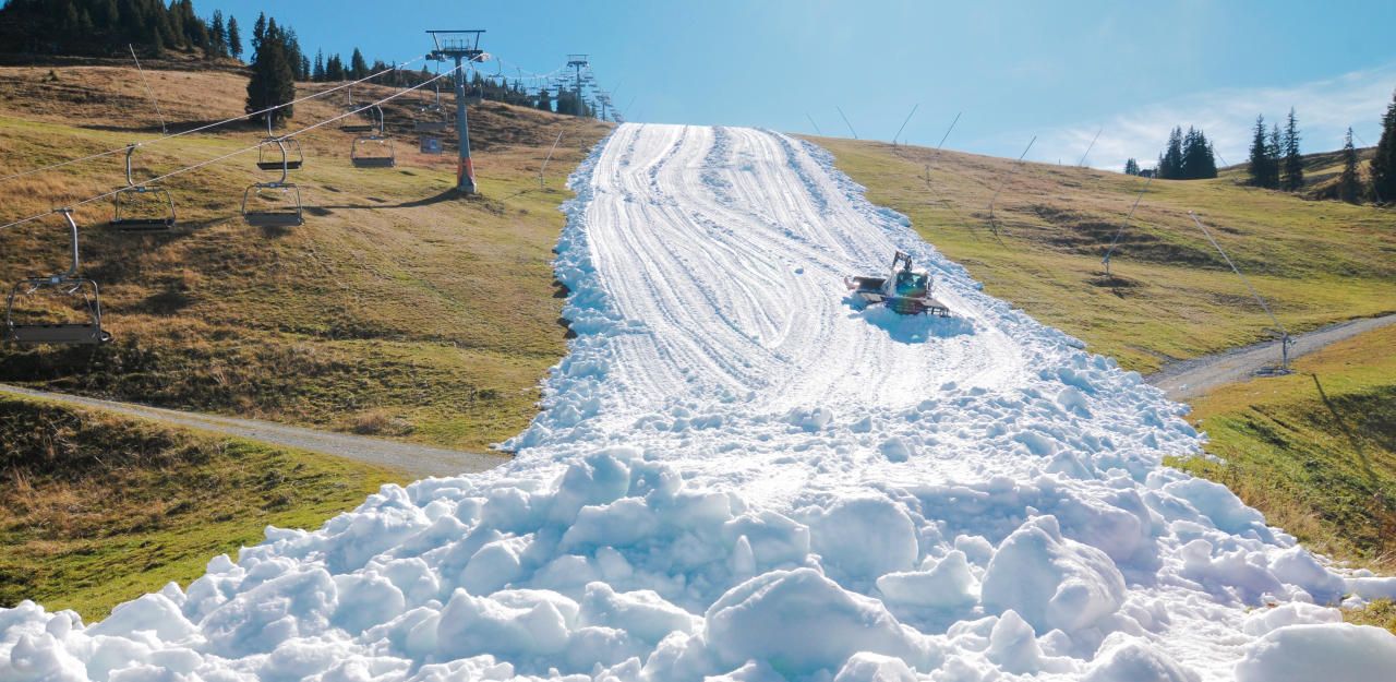 Hier startet die Skisaison inmitten grüner Wiese