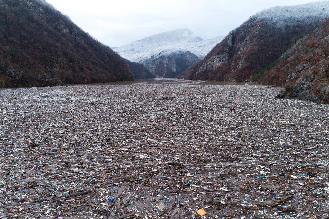 Horror! Balkan-Fluss mutiert zu schwimmender Müllhalde