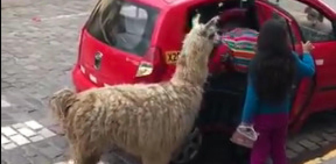 Schräg! Hier fährt ein Alpaca mit dem Taxi