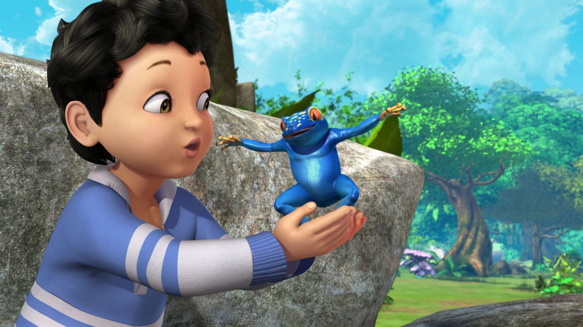 Die Froschplage: In Nimmerland darf Michael sich um die Zauberfröschin Pakwa kümmern und beweisen, dass er verantwortungsvoll sein kann. Ob sich Michael an die Pflegeanleitungen des Häuptlings hält? Es ist sehr wichtig, Pakwa vor dem Schlafen zu füttern. Während die anderen Kinder spielen, bringt Michael Pakwa allerlei Tricks bei. Als sie dann müde ist, legt er sie zum Schlafen hin vergisst aber, sie zu füttern. Da tauchen hunderte von Fröschen auf. Die Kinder versuchen, sie einzusammeln. Auch für die Piraten sind die Frösche eine Plage. Laut dem Großen Buch muss Michael Pakwa küssen, um die vielen Frösche wieder im Nichts verschwinden zu lassen. Doch welcher Frosch ist Pakwa?