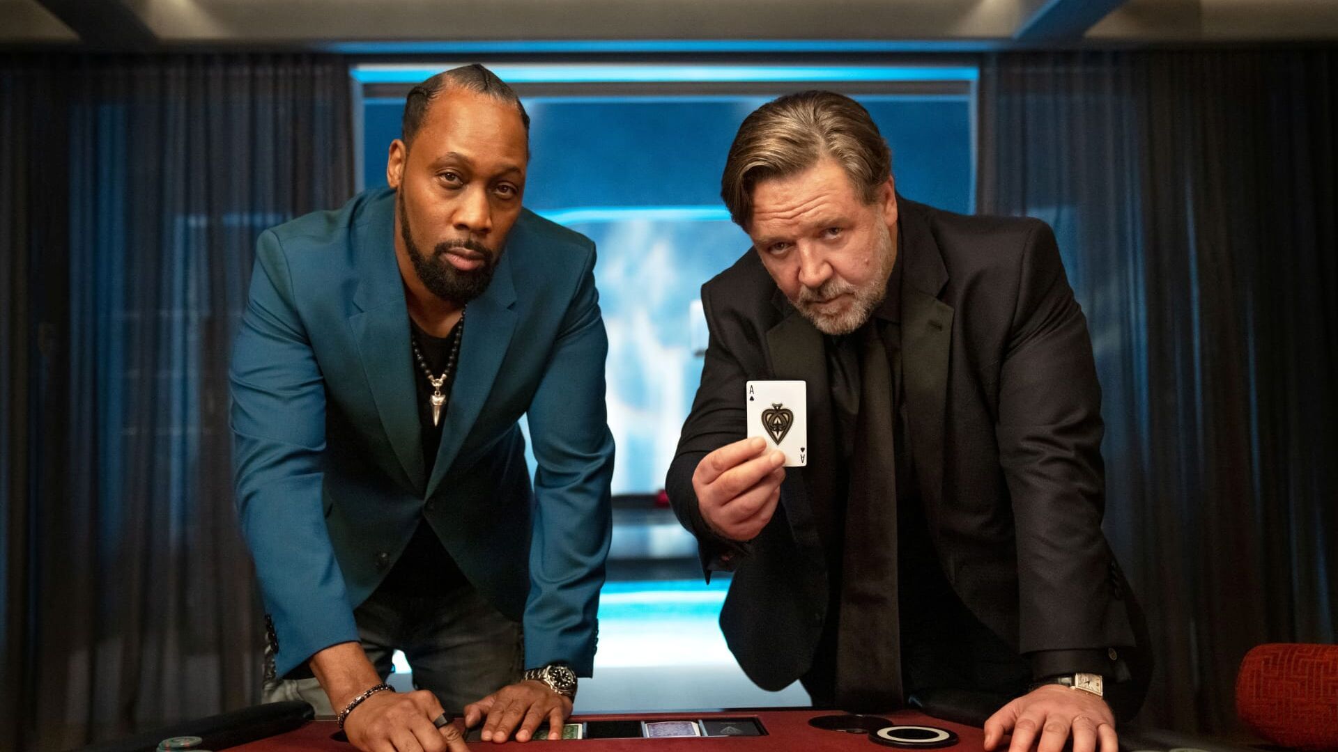 Sky Original Thriller von und mit Russell Crowe: Tech-Milliardär Jake lädt alte Freunde zu einer riskanten Pokerrunde - bei der es bald nicht nur um Geld, sondern auch um Leben und Tod geht.