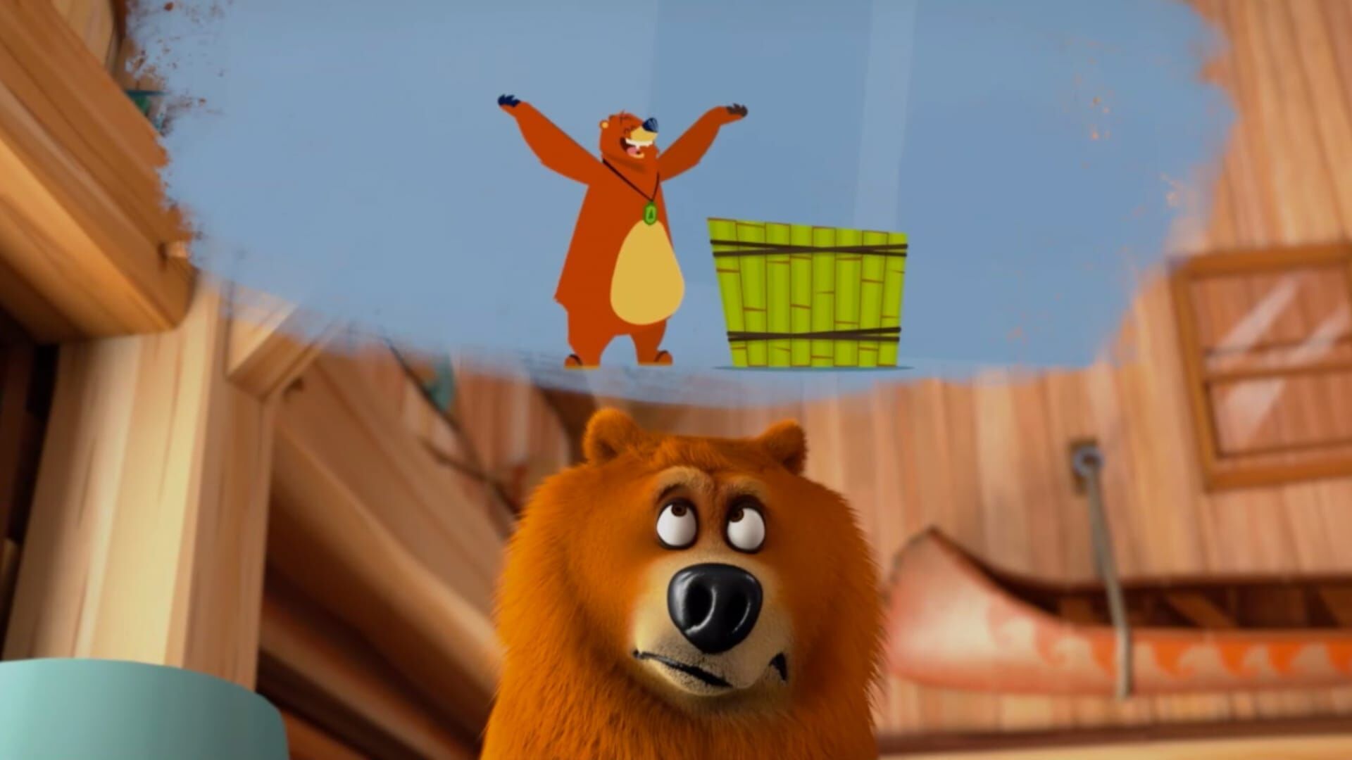 Grizzy schmeißt die Lemminge aus dem Haus und baut aus ihrer Bambusrohrachterbahn einen Jacuzzi für sich. Die Lemminge fuchsen sich wieder in die Hütte, katapultieren den Bären raus und machen sich sein Werk zunutze, um nun eine gigantische Wasserrutsche aufzustellen.
