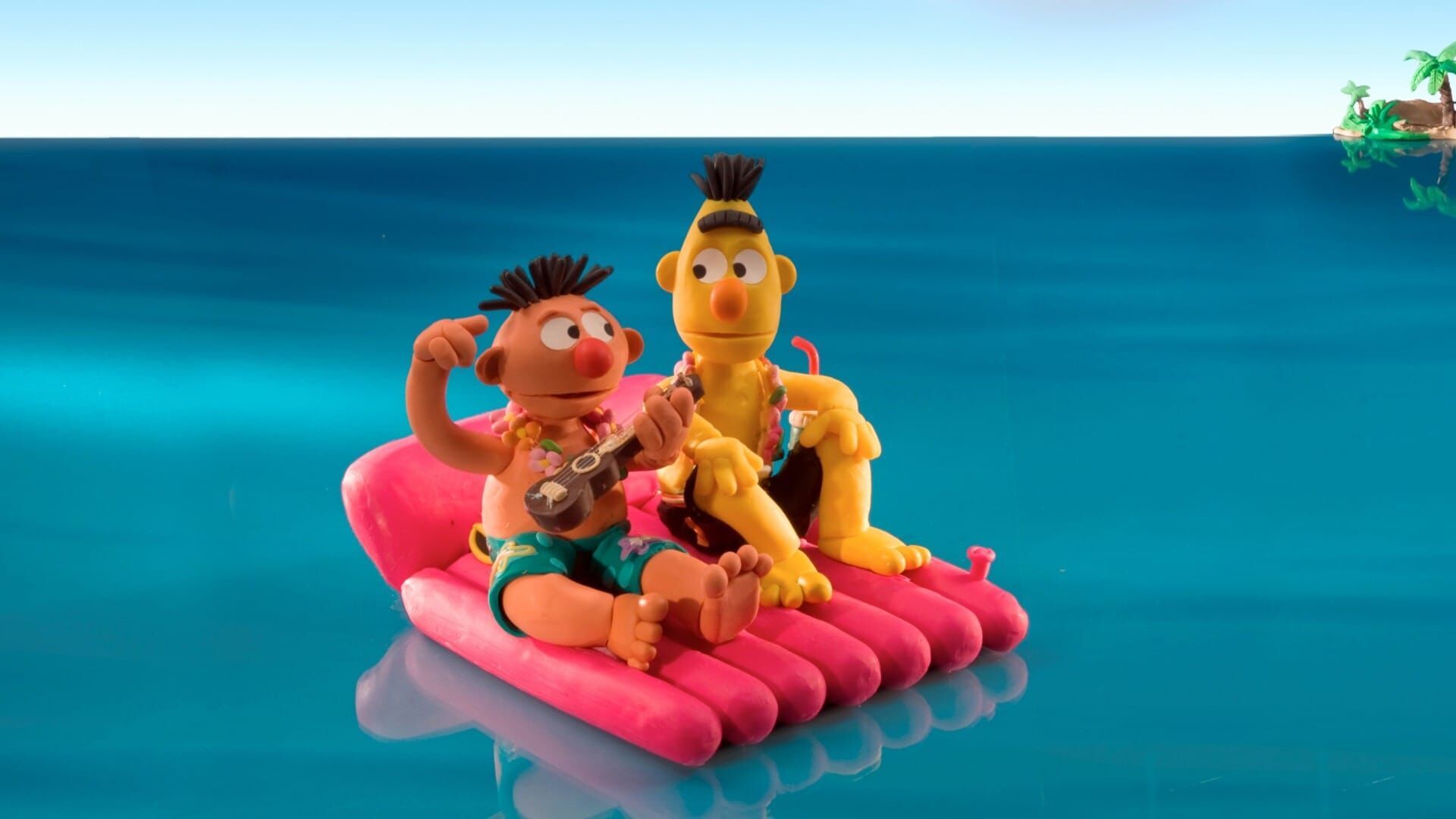Ernie und Bert, wie es sie bisher noch nie zu sehen gab: als Windsurfer, Kung-Fu-Kämpfer, Meisterdetektive oder Klavierträger. In Ernie und Bert im Land der Träume sind die wohl berühmtesten Bewohner der Sesamstraße erstmals nicht als Puppen, sondern als Knetfiguren zu sehen. In jeweils fünfminütigen Geschichten erleben die beiden reichlich Abenteuer. Ihr fliegendes Bett trägt sie jedes Mal zu einem neuen Schauplatz im Traumland: einmal landen sie auf einer einsamen Insel, um einen ungewöhnlichen Piratenschatz zu bergen und ein anderes Mal am Südpol, wo Bert das Ei einer Pinguindame ausbrüten soll. Dann wieder jagen sie als Superhelden einen diebischen Pfannkuchen oder es verschlägt sie auf einen anderen Planeten, auf dem sie den außerirdischen "Bertianern" begegnen.