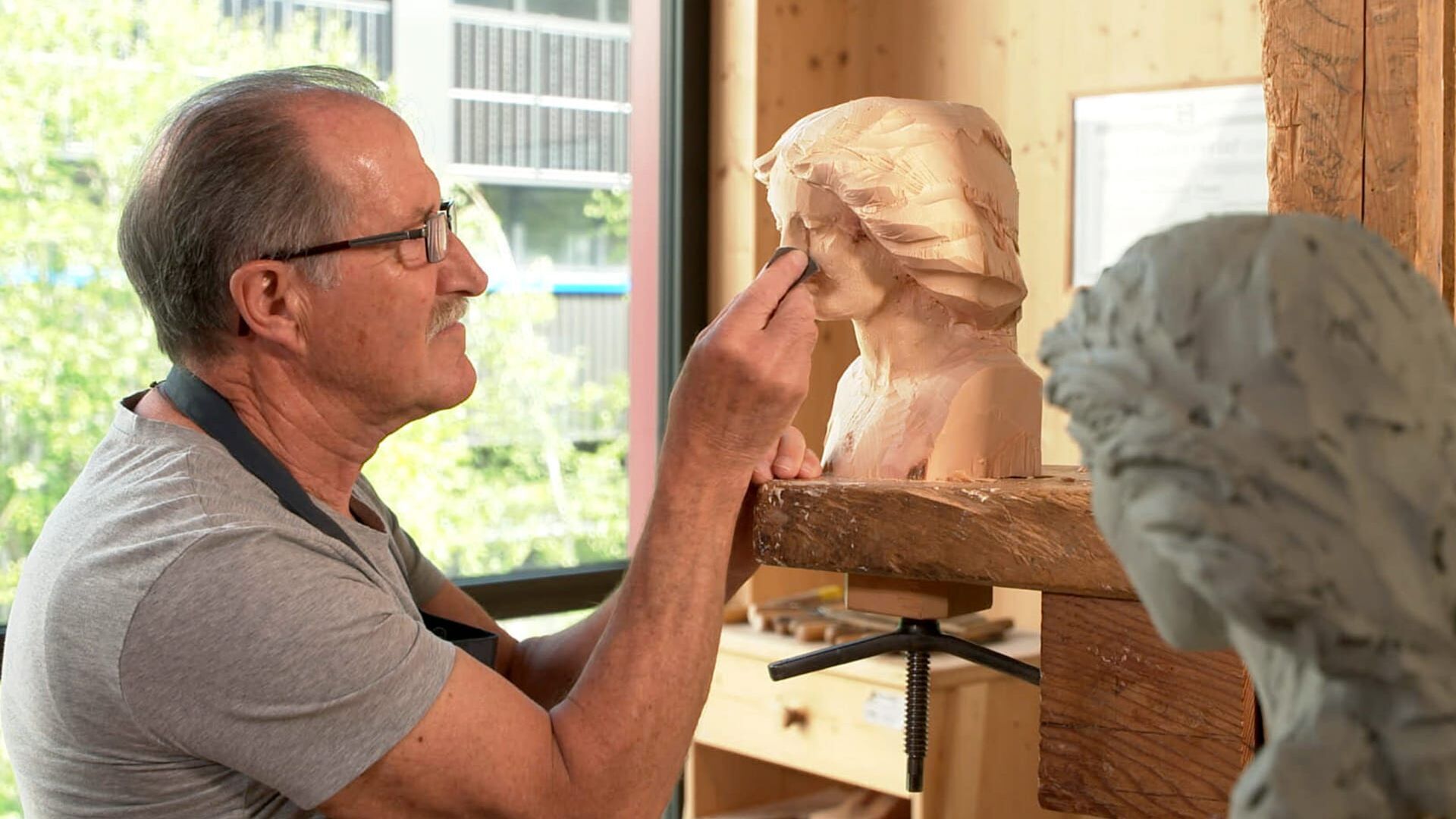 "Ein bisschen erschöpft" darf Maria auch wirken, findet Romina Demetz, schließlich habe sie "schon viel vollbracht". Dabei tupft sie winzige Pupillen ins Auge der Krippenfigur. Konzentration und eine ruhige Hand helfen der ehemaligen Biathletin und gelernten Kunstmalerin. Nach einem Modell ihres Bruders Gerald hat Vater Heinrich den Kopf geschnitzt, der mit einem speziellen Verfahren auf Ahornklötze in unterschiedlicher Größe übertragen werden kann. Vater und Sohn sind Bildhauer, Hände und Füße der Krippenfiguren fertigen sie aus Holz. Yvonne Demetz, ebenfalls Bildhauerin, verbindet dann alles mit Kupferdraht, legt die Haltung fest und modelliert den Körper mit in Leim und Gips getränktem Stoff. Entscheidend, sagt sie, ist sei Faltenwurf - "damit die Figuren so richtig lebendig ausschauen". Was ihre Schwester Romina mit fein abgestimmten Farben zum Schluss noch verstärkt. Zusammen fertigen sie in ihrem Familienbetrieb in Südtirol "Anziehkrippen", die weltweit gefragt sind.