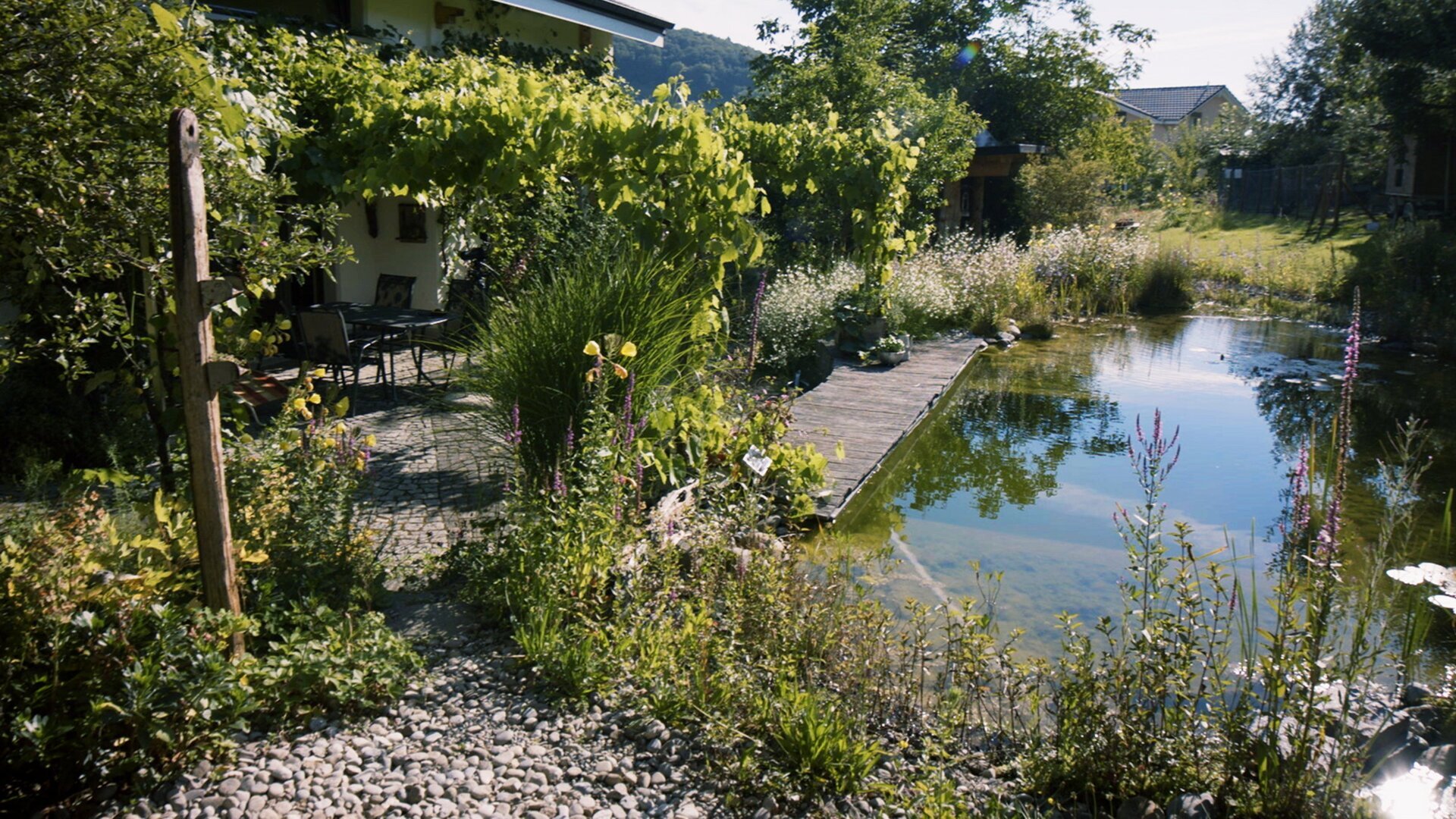 Schwimmteich, Gemüsegarten, Gartenlounge, Pflästerung, Tiergehege, ja sogar ein Pizzaofen - alles ist durch ihre eigenen Hände entstanden. Bei den Pflanzen merkt man schnell, wofür die Herzen der beiden schlagen: Sie arbeiten beide für die Organisation Pro Specie Rara und haben ihr Zuhause auch zu einem Refugium für alte Arten und Sorten werden lassen.