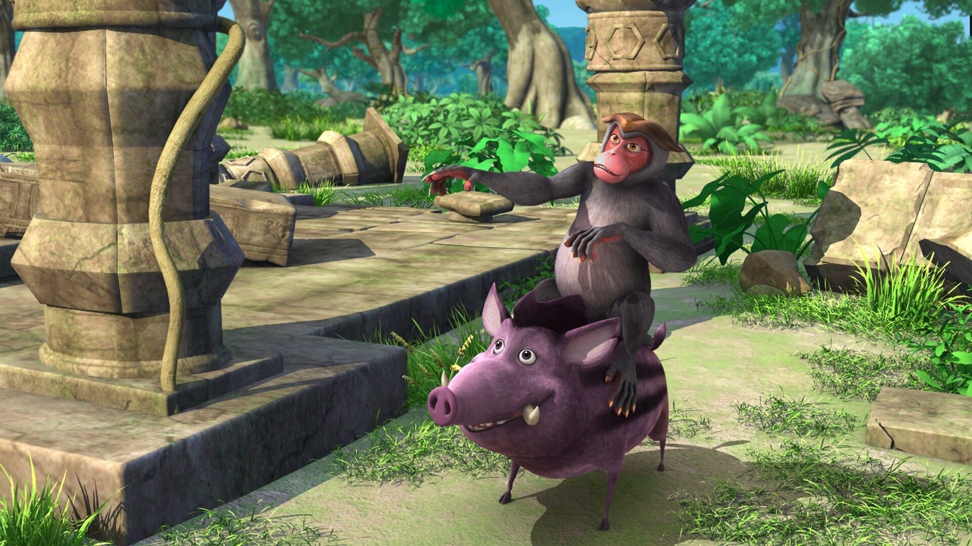 Die Sternschnuppe: Shir Khan und Tabaqui liegen auf der Lauer und beobachten Mogli mit Chota, dem kleinen Tigerjungen. Gerade als sie angreifen wollen, schlägt in der Nähe eine Sternschnuppe ein, so dass die ganze Erde bebt, und die beiden Angreifer ihren Plan nicht ausführen können. Mogli erzählt dem kleinen Tiger, dass einer Legende nach ein Wunsch in Erfüllung geht, wenn man die Sternschnuppe berührt. Als am nächsten Morgen Chota verschwunden ist, kann sich Mogli schon denken, wo er ihn findet. Doch was Mogli noch nicht weiß: Seine Suche wird ihn ganz nah an Shir Khans Höhle führen. Tanzt den Rana-Tanz!: Mogli, Mascha und ihre Schwestern sowie Rana, das Wildschwein, treffen sich zufällig alle am Tamarindenbaum. Die Affen und Rana geraten in Streit um die leckeren klebrigen Früchte. Mogli beobachtet das und macht sich über Rana lustig - er äfft seine komischen wütenden Hüpfbewegungen nach und macht daraus den Rana-Tanz. Das findet Rana überhaupt nicht lustig. Erst als Rana beleidigt davonläuft, merkt Mogli, was er angerichtet hat. Darum will sich der Menschenjunge bei Rana entschuldigen. Doch das ist gar nicht so einfach, weil mittlerweile auch Shir Khan und Tabaqui von dem Tumult angelockt wurden... Wo ist Appu?: Mogli und die Elefantengeschwister Appu und Hita spielen Ball. Dabei trifft der kleine Elefantenjunge Appu aus Versehen seinen Vater am Kopf, und Hita macht sich über ihren Bruder lustig. Um kein weiteres Unheil anzurichten, gehen die drei Freunde zum Tempel um Verstecken zu spielen. Dort fordert Appu die Schwester heraus: Wetten du findest mich nicht! Und tatsächlich, Appu ist spurlos verschwunden. Als Hita und Mogli ihn am Tempel nicht finden können, machen sie sich im Dschungel auf die Suche. Aber nicht nur sie suchen ihn, auch Shir Khan und Tabaqui sind bereits hinter dem Elefantenjungen her! Baghiras große Angst: Die drei Freunde Mogli, Balu und Baghira sind am Fluss. Balu steht mitten im Wasser und fängt Fische. Da taucht das Krokodil Jakala auf, und Balu steckt im Schlamm des Flusses fest - er schafft es nicht an Land! Mit Müh und Not kann Mogli das Krokodil vertreiben und so Balu retten. Baghira allerdings hat sich nicht getraut ins Wasser zu springen, um seinen Freunden zu helfen. Baghira hat Angst vor Wasser! Behutsam versuchen Balu und Mogli ihm die Angst zu nehmen. Doch dann taucht Jakala wieder auf.