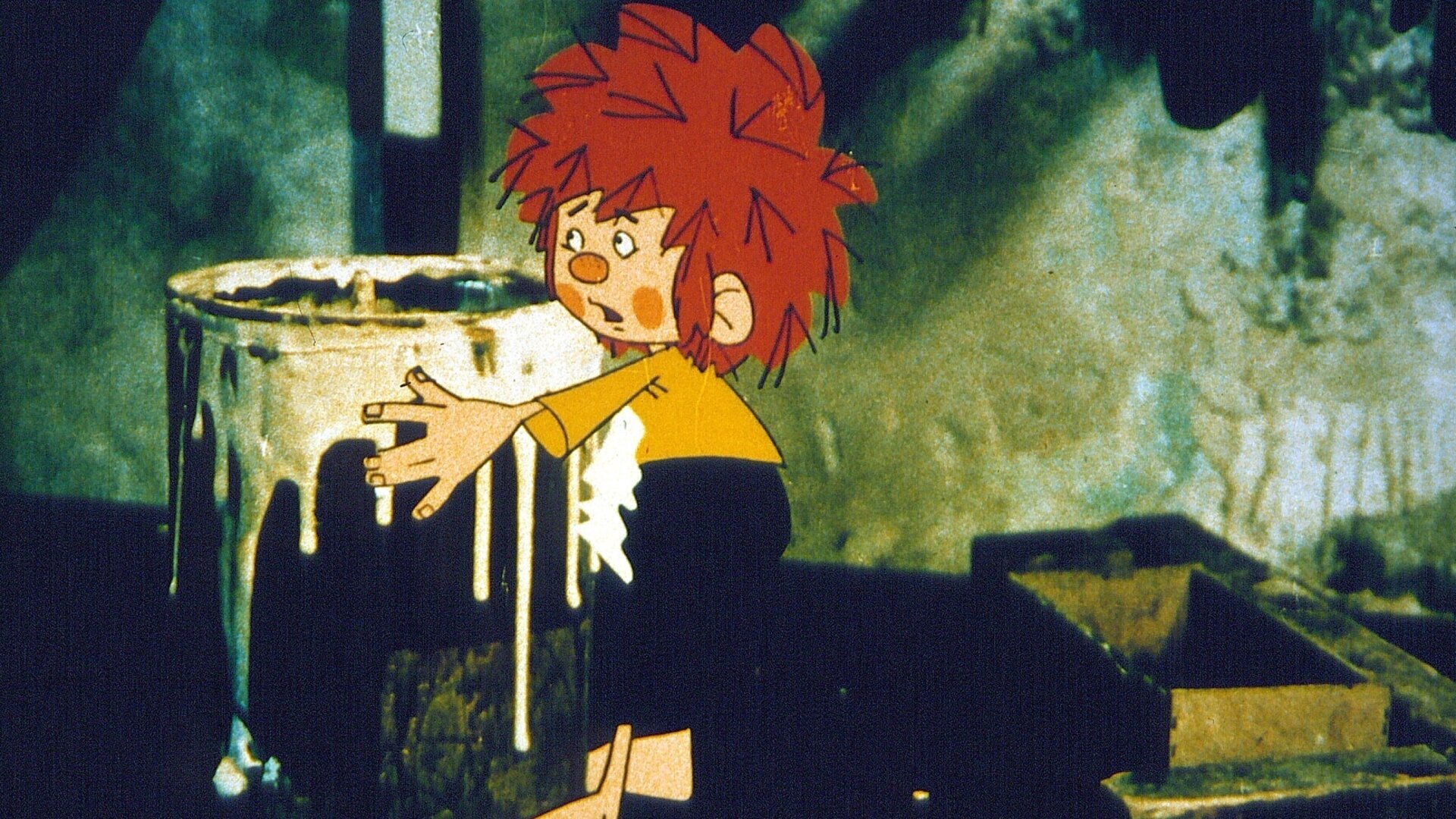 Die Eisbahn im Hof verlockt Pumuckl, mit den anderen Kindern darauf hin und her zu schlittern. Doch leider dauert es nicht lange und der Kobold fällt auf die Nase. Das Vergnügen hat ziemlich schmerzhafte Folgen, Pumuckl verstaucht sich den Daumen. Aber Meister Eder hilft natürlich und bandagiert den Daumen. Tatsächlich ist der Schmerz schnell vergessen. Trotz aller Warnungen geht der Kobold wieder hinaus, um weiter zu rutschen. Doch aus dem Spiel wird eine Jagd auf den Pumuckl. Er selber ist zwar unsichtbar, nicht aber sein großer Daumenverband, und den halten die Kinder für eine weiße Maus. Pumuckl gerät in große Schwierigkeiten!