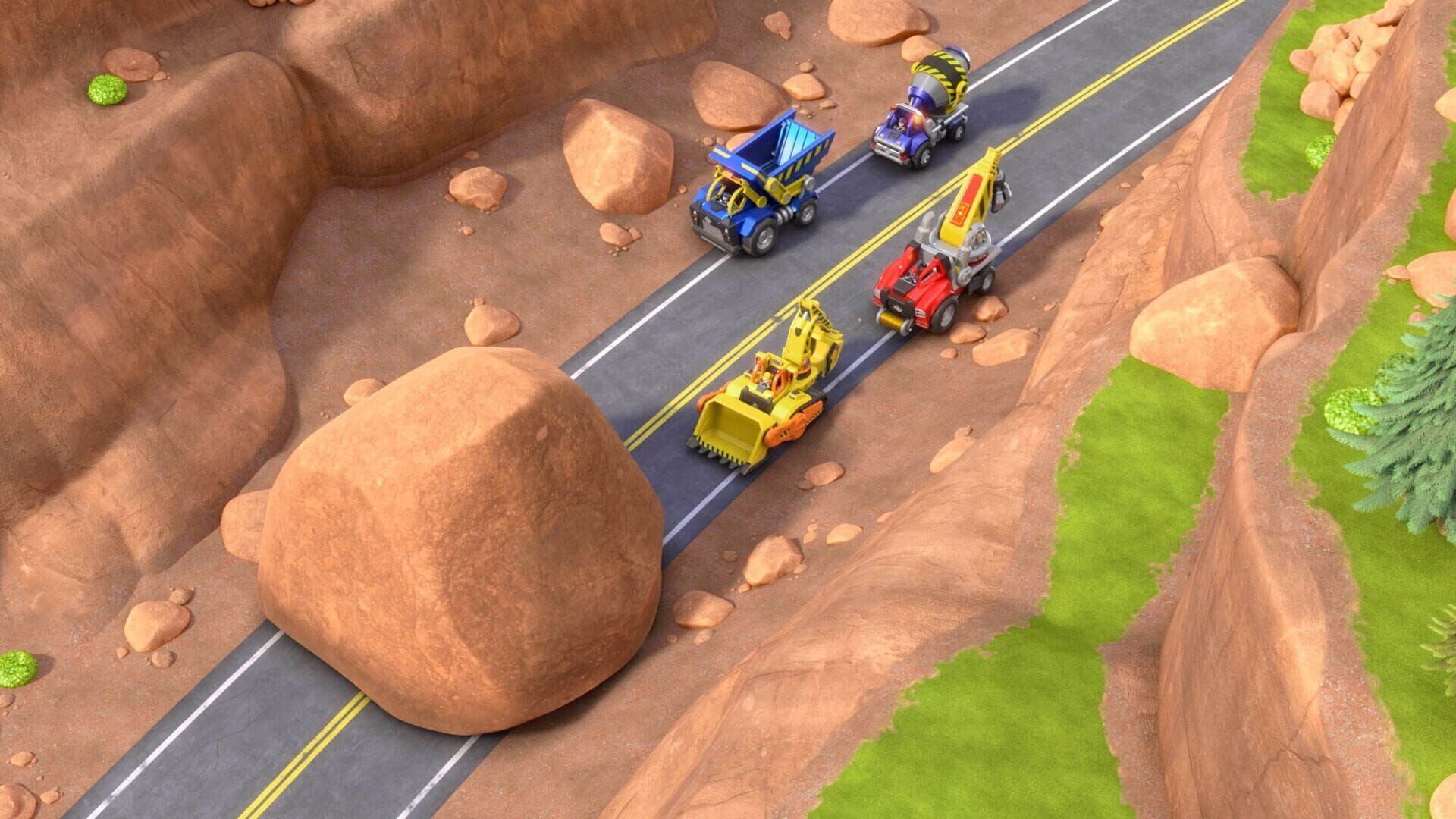 In Bau-Bucht erwartet Charger gespannt das Konzert von Frieda Funkel, doch ein unerwartetes Hindernis in Form eines riesigen Felsbrockens bedroht das Ereignis. Die Baupfoten setzen schweres Gerät ein, um den Weg freizumachen, verursachen jedoch versehentlich eine Steinlawine, die die Situation verschlimmert. Mit einer cleveren Idee von Mix gelingt es ihnen schließlich, einen Tunnel zu bauen und so das Konzert von Frieda Funkel zu retten.