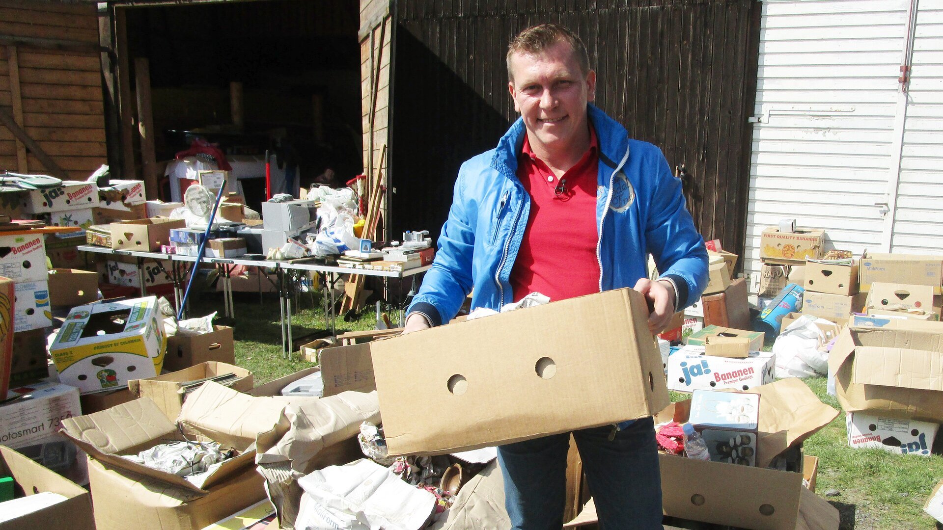 Gesundheitsgefährdender Schimmelpilz breitet sich im Treppenhaus von Jürgen (54) und Monika (52) in rasantem Tempo aus. Auch Jürgens Arbeitszimmer und das Schlafzimmer von Tochter Laura-Jane (19) sind inzwischen befallen. Das Geld für die dringend notwendige Reparatur des maroden Dachs, die Ursache des Übels, fehlt der Familie allerdings. Die monatliche Miete für eine Scheune voller Trödel belastet die Familienkasse zusätzlich.