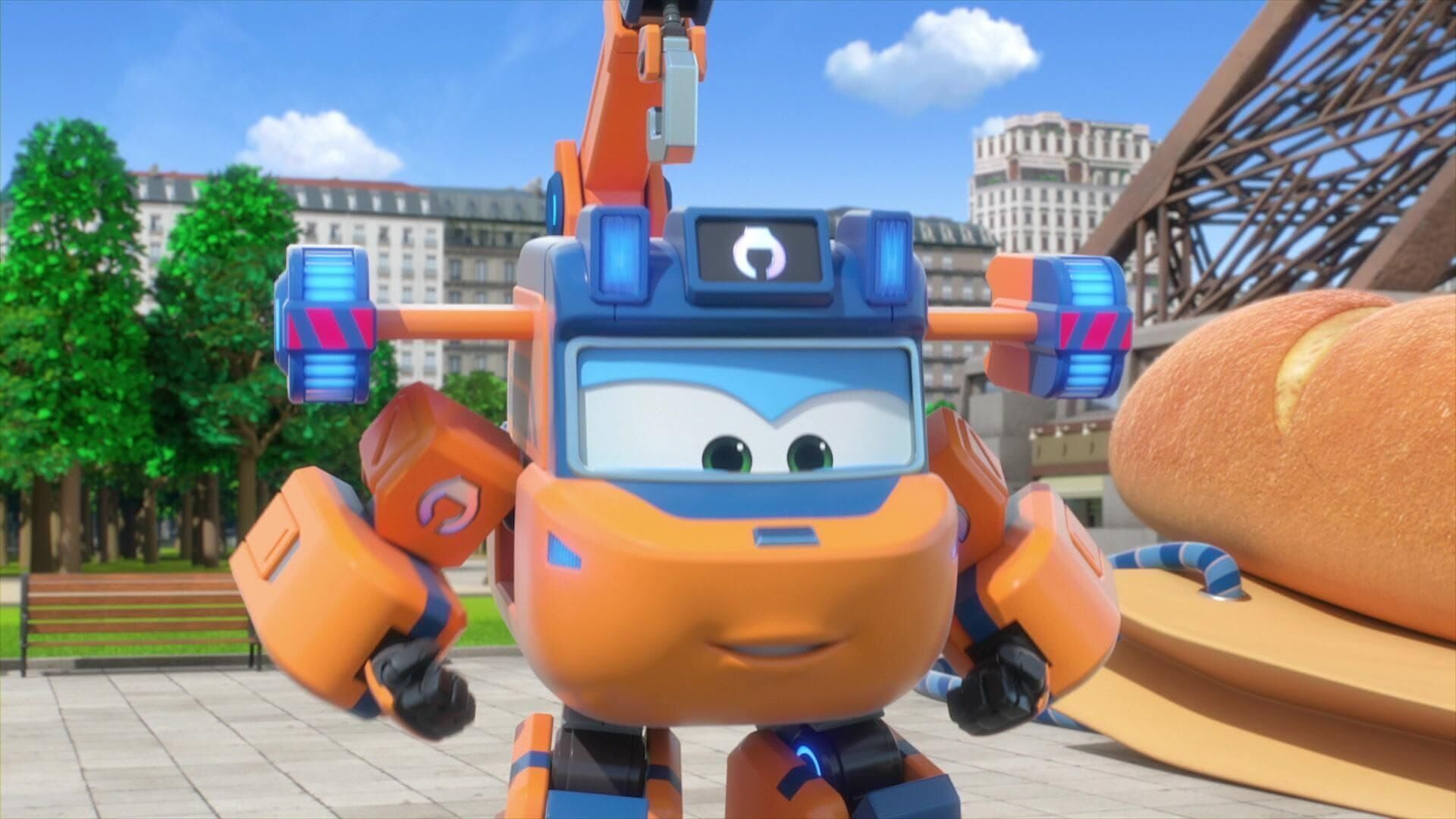 Jett und Marty liefern eine riesige Tüte nach Paris, wo Nico und seine Mama ein riesiges Baguette für das Schlemmerfest in Nicos Schule gebacken haben. Es gibt einen Preis für den phantasievollsten Beitrag, weshalb das Baguette besonders wichtig ist. Da der Transport des Brots auf dem Luftweg durch gefräßige Vögel gestört wird, bauen Nico und die Super Wings das Baguette zu einem Zug um.