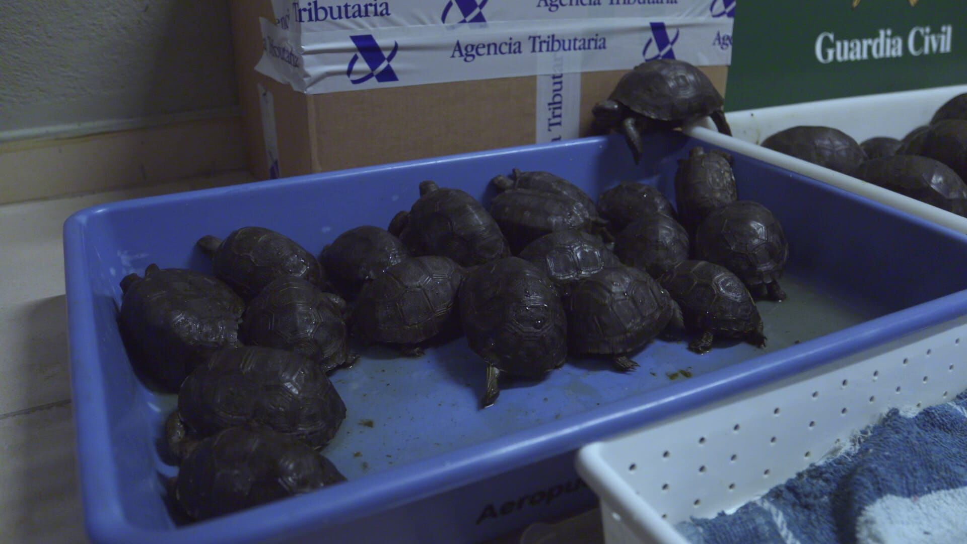 Als die Guardia Civil am Flughafen Barcelona-El Prat den Koffer eines Passagiers aus Afrika kontrolliert, verschlägt es den erfahrenen Beamten die Sprache. In einem Plastikbehälter kommen plötzlich 76 mit Handtüchern umwickelte Schildkröten zum Vorschein. Die gestressten Tiere werden zunächst bei der Steuer- und Zollbehörde untergebracht. Für Tierquälerei und den Handel mit geschützten Arten drohen dem mutmaßlichen Schmuggler jeweils drei Jahre Haft. Am Airport in Brüssel ziehen Grenzschützer unterdessen Haschisch und Cannabisöl aus dem Verkehr.