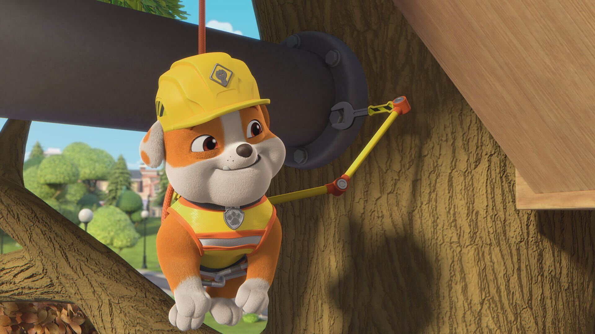 Parkrangerin Rose Lily möchte Lily und Lucas zeigen, wie man sicher auf einen Baum klettert, aber die alte Eiche im Park hat zu viele alte Äste. Rubble und Crew sollen das morsche Holz entfernen, damit neue, starke Äste nachwachsen können. Da es mindestens ein Jahr dauern würde, bis die Kinder auf die Eiche klettern können, setzen die Baupfoten Rubbles Idee, ein Baumhaus zu bauen, in die Tat um. Jetzt steht den Kletterübungen nichts mehr im Wege.