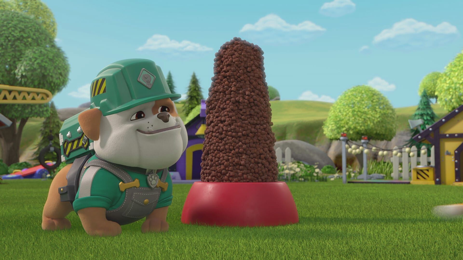 Opa Gravel hat einen großen Berg Trockenfutter gemacht, und während Rubble überlegt, wo er es aufbewahren soll, erhält er einen Hilferuf von Herrn Klingeling wegen einer kaputten Tür. Während Rubble die Reparaturen durchführt, überrascht die Crew ihn mit einem Super-Trockenfutter-Spender, und trotz eines kleinen Missgeschicks gelingt die Überraschung.