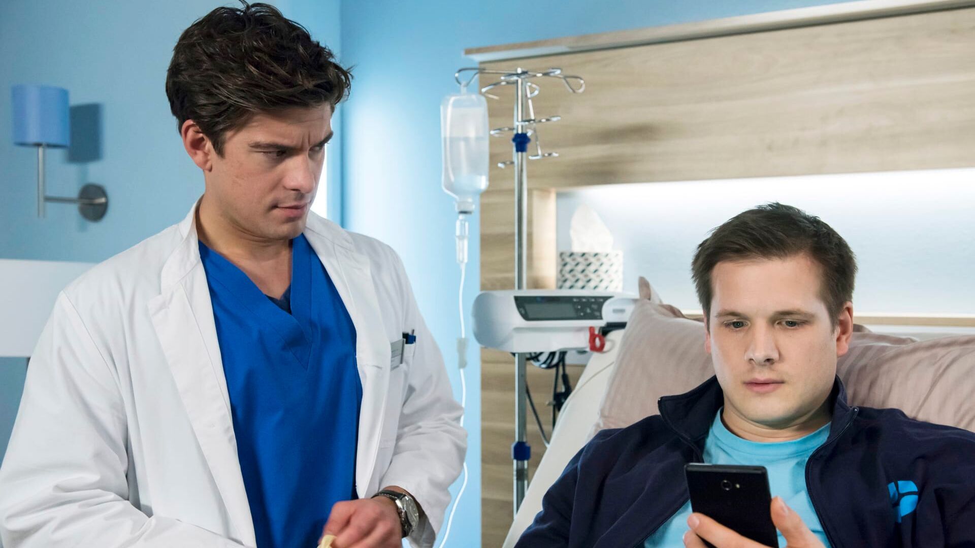 Während sich die jungen Ärzte neben ihrer Arbeit am JTK auch noch auf die Zwischenprüfung vorbereiten, ist Dr. Theresa Koshka im Rettungswagen unterwegs. Sie bringt den 16-jährigen Jasper, der sich beim Sturz einen Wirbel gebrochen hat, in die Notaufnahme. Oberarzt Dr. Niklas Ahrend, der gerade mit Dr. Lea Peters aus der Sachsenklinik im Gespräch ist, will sofort operieren. Obwohl die Neurochirurgin eigentlich für einen Vortrag nach Erfurt gekommen ist, bietet sie sogleich ihre Unterstützung an. Jaspers OP dauert einige Stunden. Als der Junge aufwacht, erhebt er schwere Anschuldigungen gegen seine Pflegemutter Meike. Ist ihre Sorge um Jasper echt? Julia Berger und Ben Ahlbeck nehmen sich derweil des wehleidigen Marios an, der mit einem scheinbar kleinen Kratzer in die Notaufnahme kommt. Während die Assistenzärzte nicht glauben können, dass Mario wirklich solche Schmerzen hat, nimmt die hinzugezogene Dr. Leyla Sherbaz ihn kurzerhand auf. Neben seinen Schmerzen muss Mario sich auch noch zwischen Freundin und Katze entscheiden. In dieses absurde Problem werden auch Ben und Leyla gezogen. Doch als sich die medizinischen Hinweise für Marios Fall zuspitzen, wird aus Spaß bald Ernst. Julia Berger leidet mal wieder unter ihren Rückenschmerzen. Sie wendet sich an Freundin und Kollegin Vivienne Kling. Und während sich die beiden jungen Chirurginnen auf Spurensuche begeben, kommt ihnen Dr. Matteo Moreau auf die Schliche. Kommt der Oberarzt hinter ihr Geheimnis?