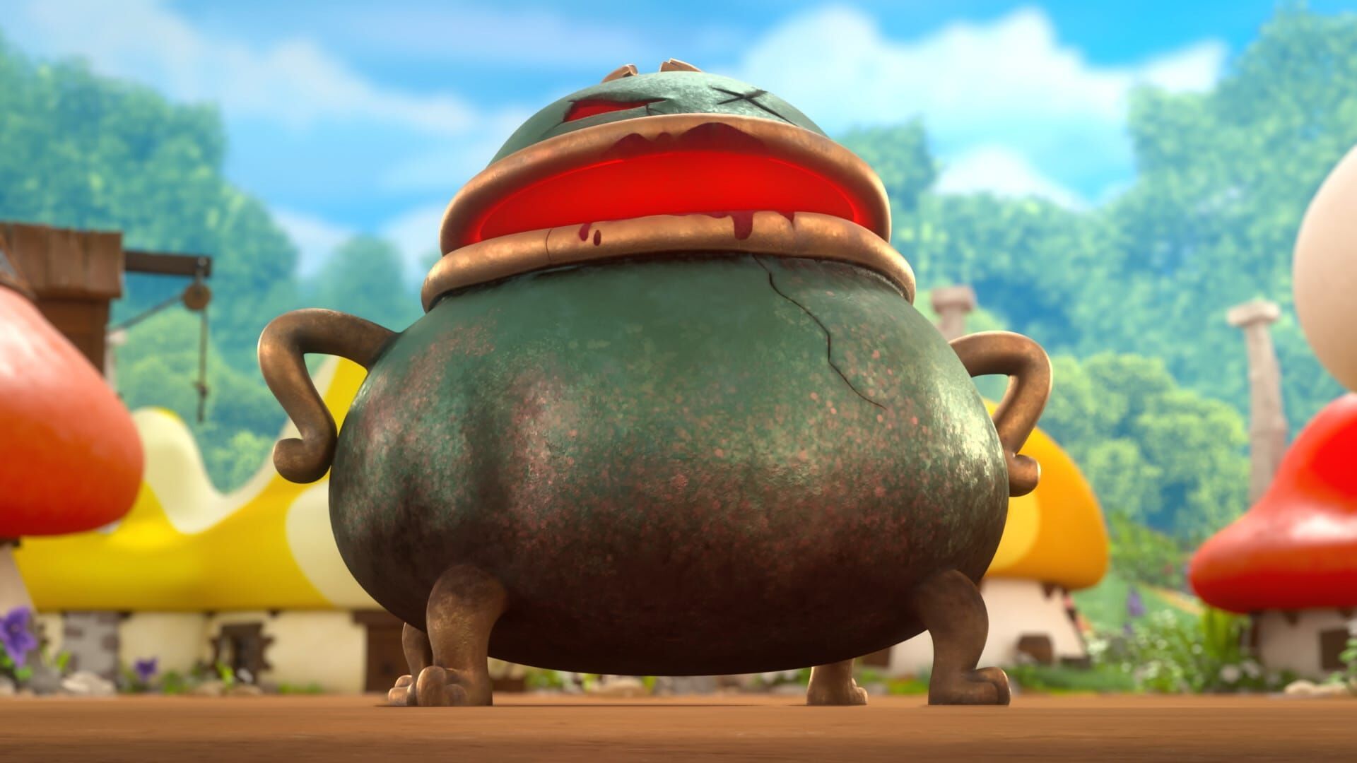 Die Rache des Zauberkessels: Papa Schlumpf misslingt ein Zaubertrank, was er darauf zurückführt, dass sein Zauberkessel veraltet ist. Schlaubi schmeißt diesen daraufhin auf den Müll. Auf der Suche nach einem großen Gefäß für sein neues Gericht entdeckt Koch den Kessel und nimmt ihn mit. Als er mit dem Kochen beginnt, wird dieser plötzlich zum Leben erweckt. Wütend auf Papa Schlumpf, begibt sich der Kessel auf einen Rachefeldzug. Die lieben Verwandten: Gargamel muss auf Befehl seiner Mutter auf seinen Neffen Dwayne und seine Nichte Rowena aufpassen. Das passt ihm nicht in den Kram, denn er hat gerade Lily und Schlaubi gefangen. Die beiden Kinder stiften ihm zu großes Chaos und er beschließt, sie dem hungrigen Oger Großmaul zu überlassen. Doch Dwayne und Rowena können sich befreien und rächen sich an ihrem bösen Onkel, indem sie Lily und Schlaubi zur Flucht verhelfen. Drachenmut: Schlappi wird bei der Sarsaparilla-Ernte im Wald zurückgelassen und vom Oger Großmaul gefangen genommen. Lily und ihr Drache Voltaire hören seine Hilferufe. Sie folgen und befreien ihn. Schlappi versucht, Voltaire für sich zu gewinnen, doch als er ihn anfüttert, wird er vom Drachen verschluckt. Verpuppt: Gargamels Neffe Dwayne und seine Nichte Rowena sind mal wieder zu Besuch. Rowena fängt Beauty und Sturm im Wald und verwandelt sie in Schlumpfpuppen. Rowena und Dwayne verabreden, dass Beauty und Sturm zuerst Hochzeit feiern und Dwayne sie danach per Rakete auf Hochzeitsreise schicken darf. Als die Rakete zündet, müssen Beauty und Sturm an die Rakete gefesselt versuchen, die Lenkung unter ihre Kontrolle zu bringen und zu fliehen. Drachenzähmen falsch gemacht: Lilys Drache Voltaire wird von Rowena entführt und mittels eines magischen Armbands gezwungen, ihre Befehle auszuführen. Doch mit Dummis Hilfe und der der Tiere aus dem Wald, kann Lily Voltaires Schuppe im magischen Armband gegen ein Haar von Gargamel austauschen, der daraufhin Rowenas willenloses Haustier ist. Feuerwehr zu Fuß: Bei einem Einsatz versagen Clumsy und Dummi wieder mal, weil sie sich darum streiten, wer das Feuerwehrauto fahren darf. Papa Schlumpf befiehlt den beiden, eine Lösung zu finden. Die glaubt Dummi zu haben: Das Feuerwehrauto wird einfach irgendwo im Wald geparkt. Da die beiden nun zu Fuß unterwegs sind, geht der nächste Einsatz wieder schief. Als sie das Feuerwehrauto zurückholen wollen, müssen Sie feststellen, dass es nicht mehr da ist...