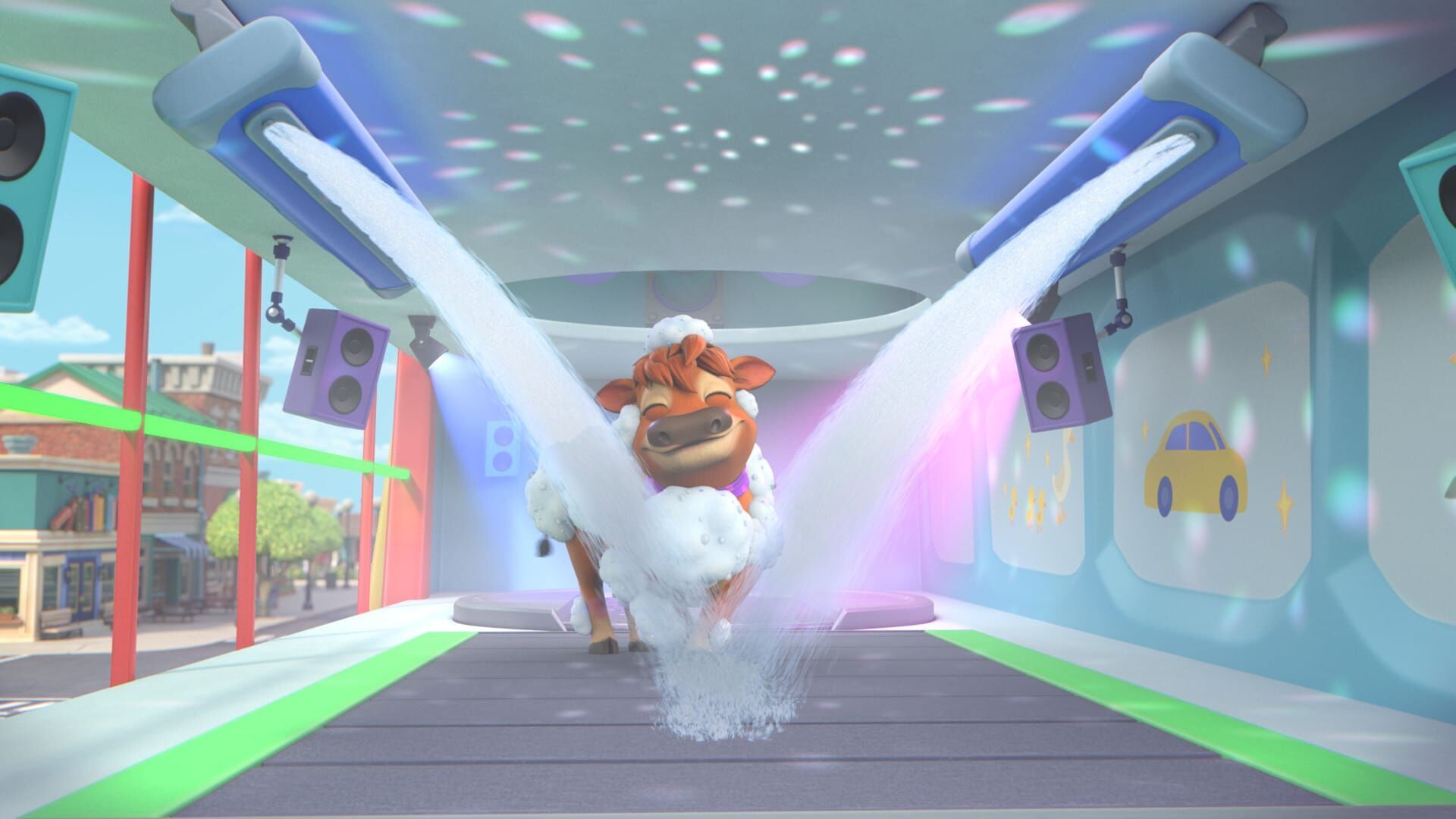 Rubble und Crew unterstützen Bäuerin Zoe bei den Vorbereitungen für den Bauernhoftiere-Streicheltag, indem sie ihren Wagen mit einer Super-Waschanlage reinigen. Als die Tiere sich über Zoes Marmelade hermachen und verschmiert sind, verwandeln die Baupfoten die Waschanlage in eine Tier-Waschanlage. Muhreen, die Tanz-Kuh, wird durch eine spezielle Tanz-Party überzeugt, sich ebenfalls waschen zu lassen, wodurch der Streicheltag gerettet wird.